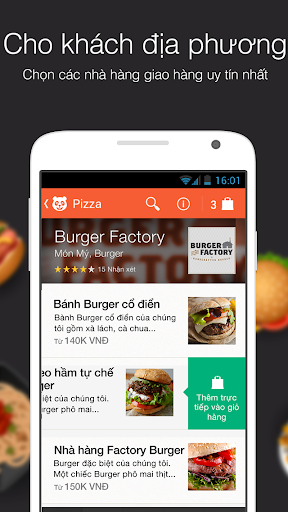 Cho dù bạn thích Pizza, Bánh mì, Sushi, Món Ý, món Chay, món Nhật hay các loại ẩm thực được ưa chuộng khác. Đảm bảo bạn sẽ có một bữa ăn được giao nhanh, nóng hổi và ngon tuyệt khi đặt món qua ứng dụng miễn phí của foodpanda. Đã có tại Ấn Độ, CHLB Nga, Brasil, Ba Lan, Ả Rập, Singapore, Pakistan & Đài Loan và nhiều quốc