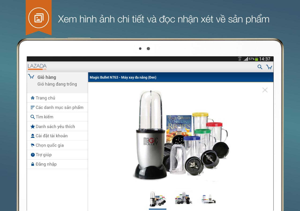 Tải miễn phí ứng dụng điện thoại Lazada để nhận được những chương trình khuyến mãi và deal giảm giá. Bạn có thể duyệt qua 12 danh mục sản phẩm ngay trên chiếc điện thoại Android của mình để chọn được mức giá phù hợp nhất, từ các sản phẩm điện tử như điện thoại, máy tính bảng, máy ảnh, phụ kiện điện thoại đến các sản phẩm đồ gia dụng, chăm sóc sức khỏe và sắc đẹp...Bạn cũng có thể xem toàn bộ các thông tin chi tiết, hình ảnh về sản phẩm, nhận xét và đánh giá của khách hàng về sản phẩm đó. Với dịch vụ thanh toán trực tuyến an toàn đảm bảo, Lazada giúp bạn thoải mái mua sắm mà không cần lo lắng.