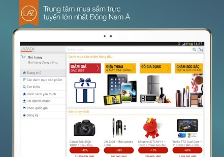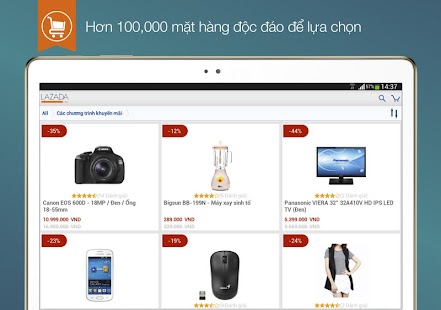 Với các deal giá tối và khuyến mãi đặc biệt mỗi ngày, ứng dụng mua sắm trên điện thoại Lazada mang đến cho bạn sản phẩm giá tốt nhất từ các thương hiệu như Samsung, Apple, Acer, Asus, Sony, Canon và Toshiba...Mua sắm cùng Lazada chưa bao giờ đơn giản và tiện lợi đến thế!